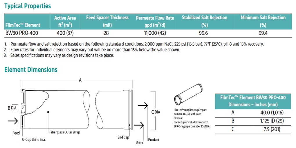 - Based on historical BW30 Industry-standard RO membrane with decades of proven performance.